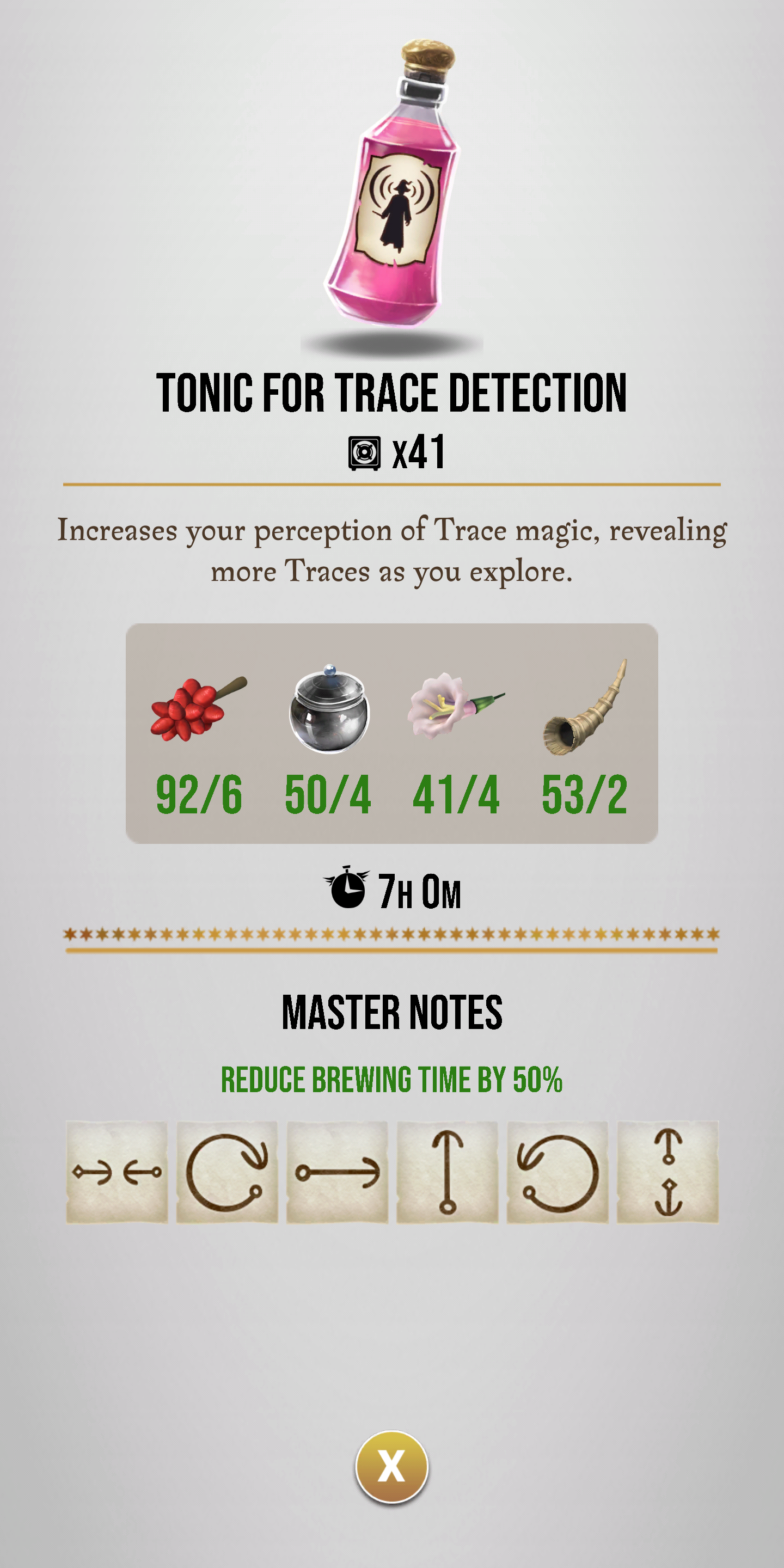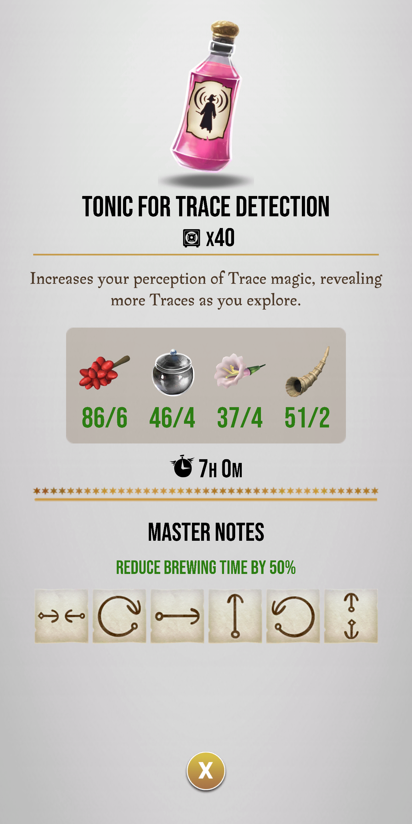 "Tonic for Trace Detection will reveal more Community Day Traces, only take 1 hour to brew, and its Master Notes will reduce brew time by 50%"