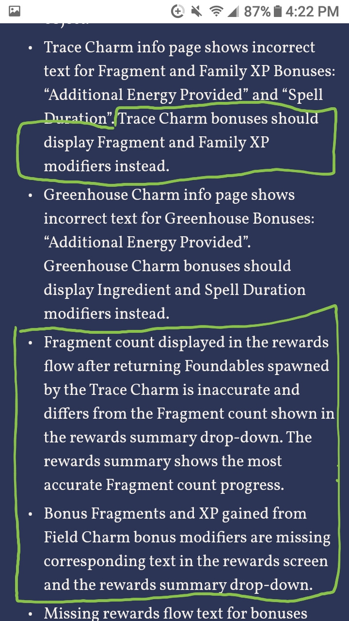 --- When you return a Trace Charm Trace, in one part of the Patronus Animation it shows you as receiving only 1 Fragment, yet in another part of the Patronus Animation it shows you as receiving 2 Fragments. The Fragment count in the rewards summary section showing you as receiving 2 Fragments is correct, but the Fragment count shown at the beginning of the rewards summary section is incorrect