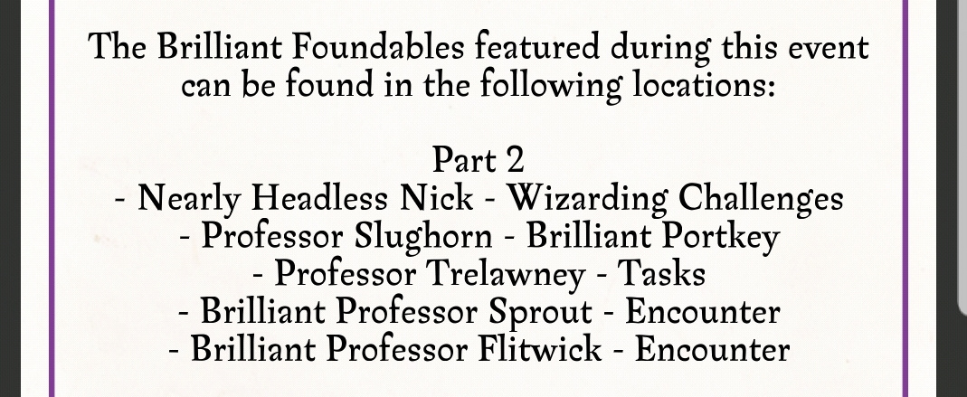 @hpwulola Please note that the drop rates for the mysterious notes are WAY off - somewhere around 1% of brilliant foundables are yielding g a mysterious note, and anecdotal evidence suggests they are only coming from week 1 BE foundables. This suggests over 100 foundables need to be returned to complete 4/4 which can’t have been the intention as 45 are required for the bonus section.