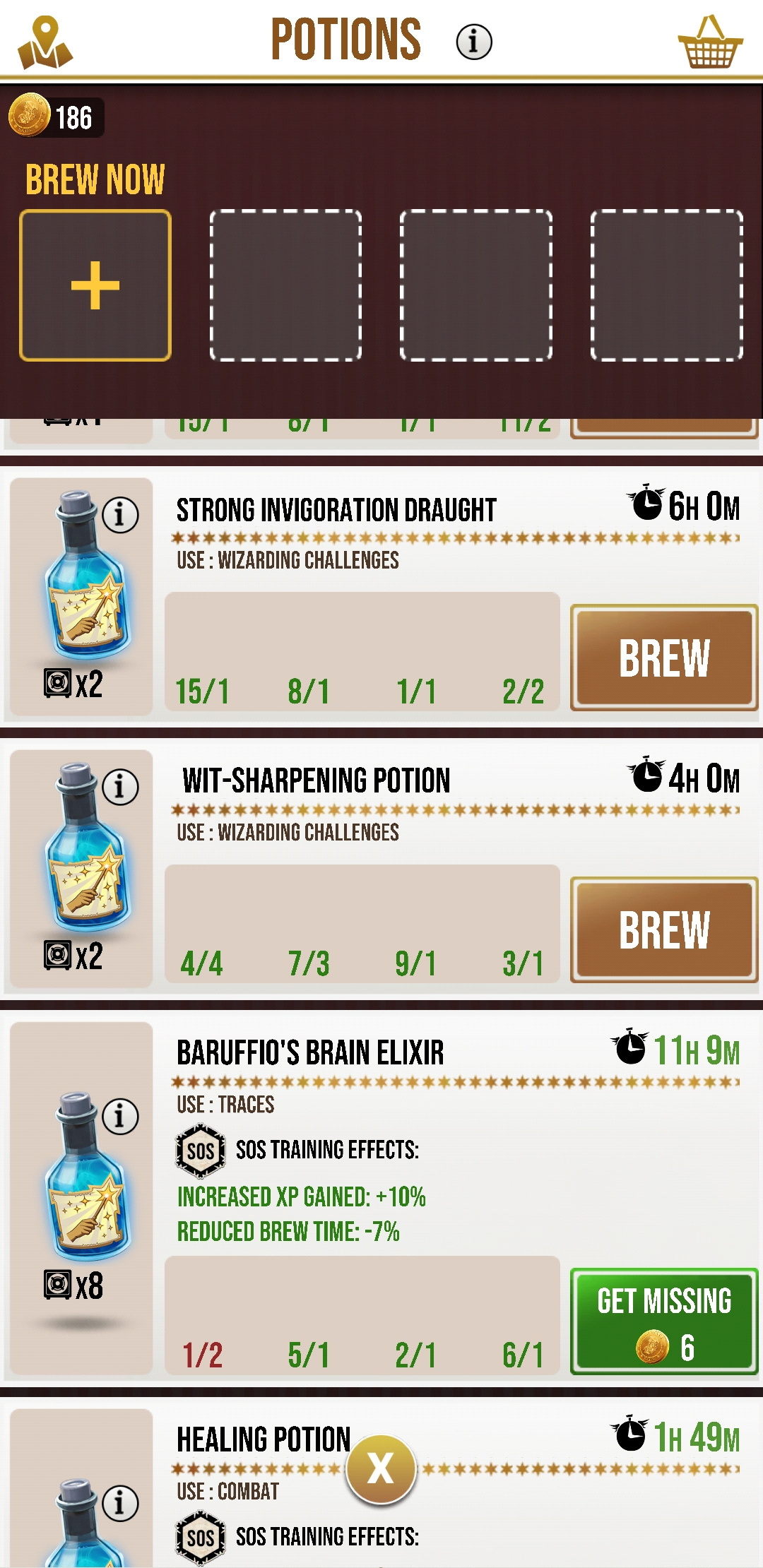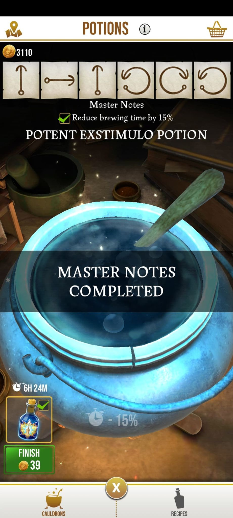 1. When I click on a notification that a potion has finished brewing, it typically opens the game and takes me straight to the potions. Sometimes when it does, it let's me collect the potion, but then I can't do anything else. Can't go to the map, can't open up master notes on another potion I had queued, nothing. I have to close out of the whole game and open again.
