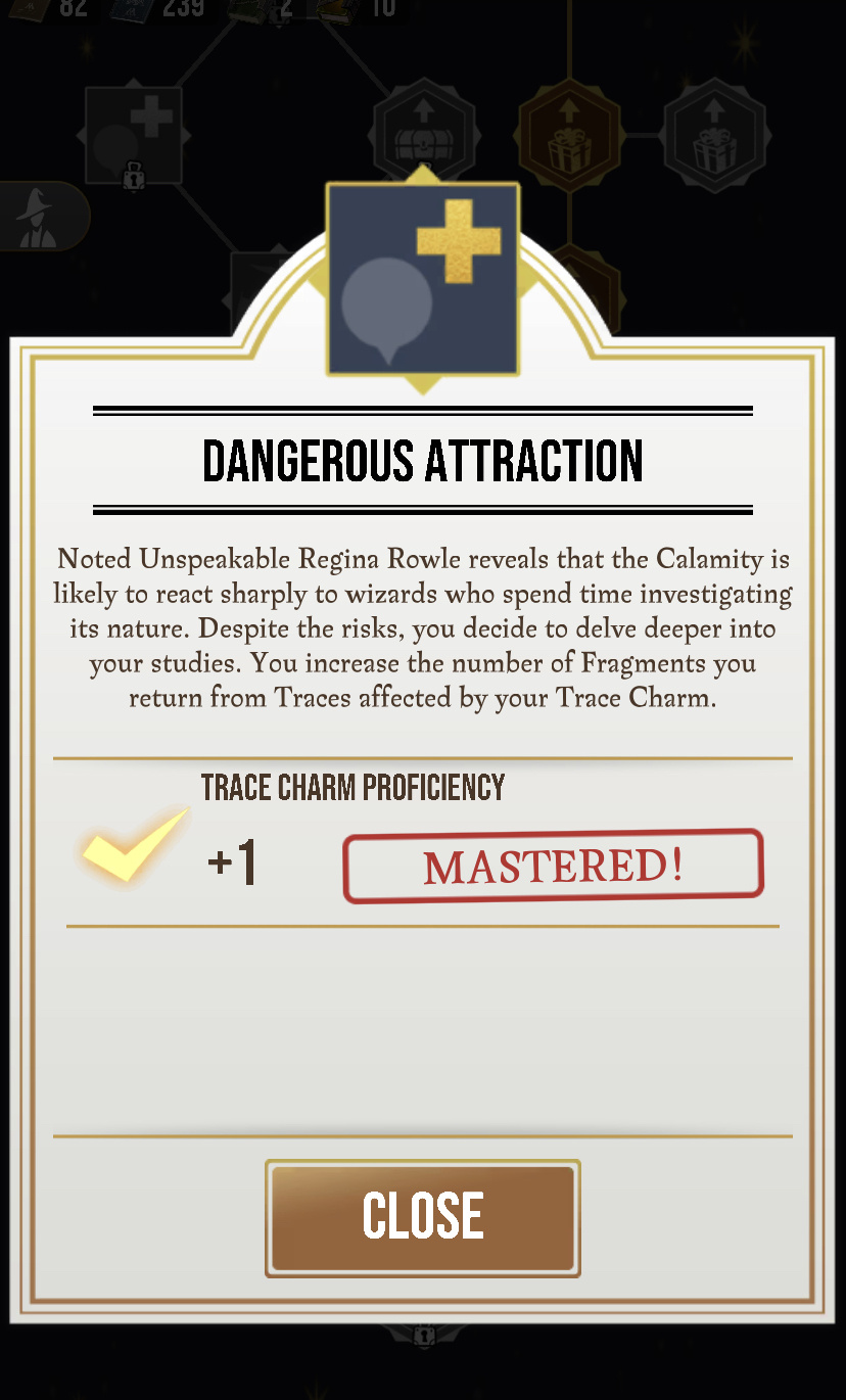 See the thread here: https://community.harrypotterwizardsunite.com/en/discussion/7886/trace-charm-proficiency-bugged#latest
