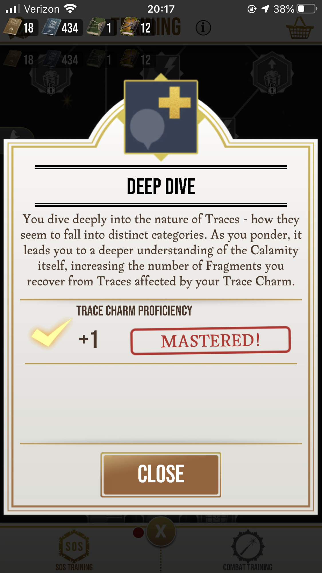 I am not seeing fragment number increases when using the trace charm ( as promised in the trace charm proficiency upgrades in SOS training). I mastered “deep dive” and “dangerous attraction” which I believe should mean the number of fragments returned for each trace generated by the trace charm is increased to 4. But the number of fragments being retrieved is still just 2 (the same as before I upgraded deep dive and dangerous attraction nodes). Basically these two upgrades aren’t being reflected in game play. I’m thinking this is a bug as otherwise there is no point to upgrading these.