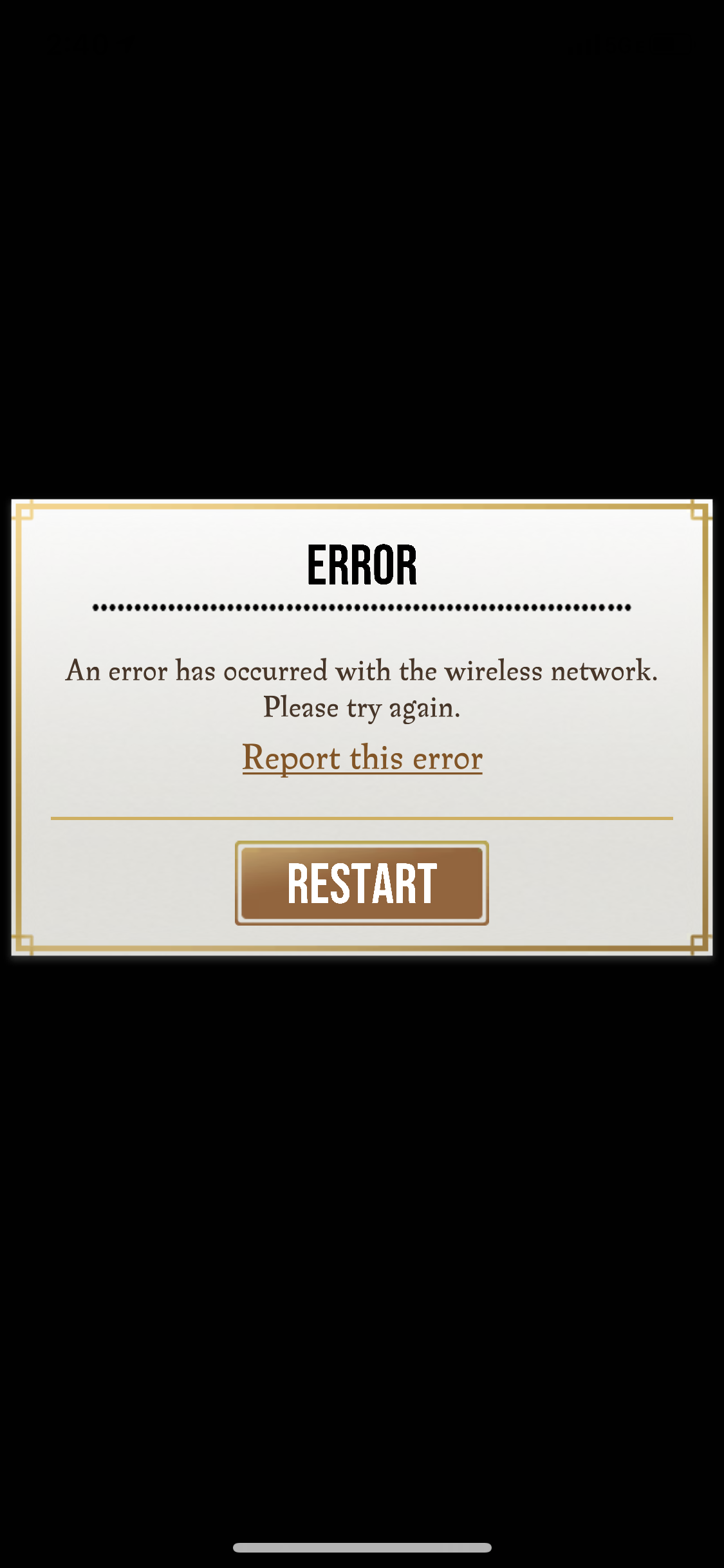 I did the recent update. I have a Galaxy S7. I had to uninstall and reinstall because I had the issue with the game using nearly all of the memory on my phone. After doing that yesterday afternoon the game had been working great. I was playing earlier today with no issues. I just tried to open the game and now I am in the "Error with the wireless network" loop. Please fix it. Thank you in advance.