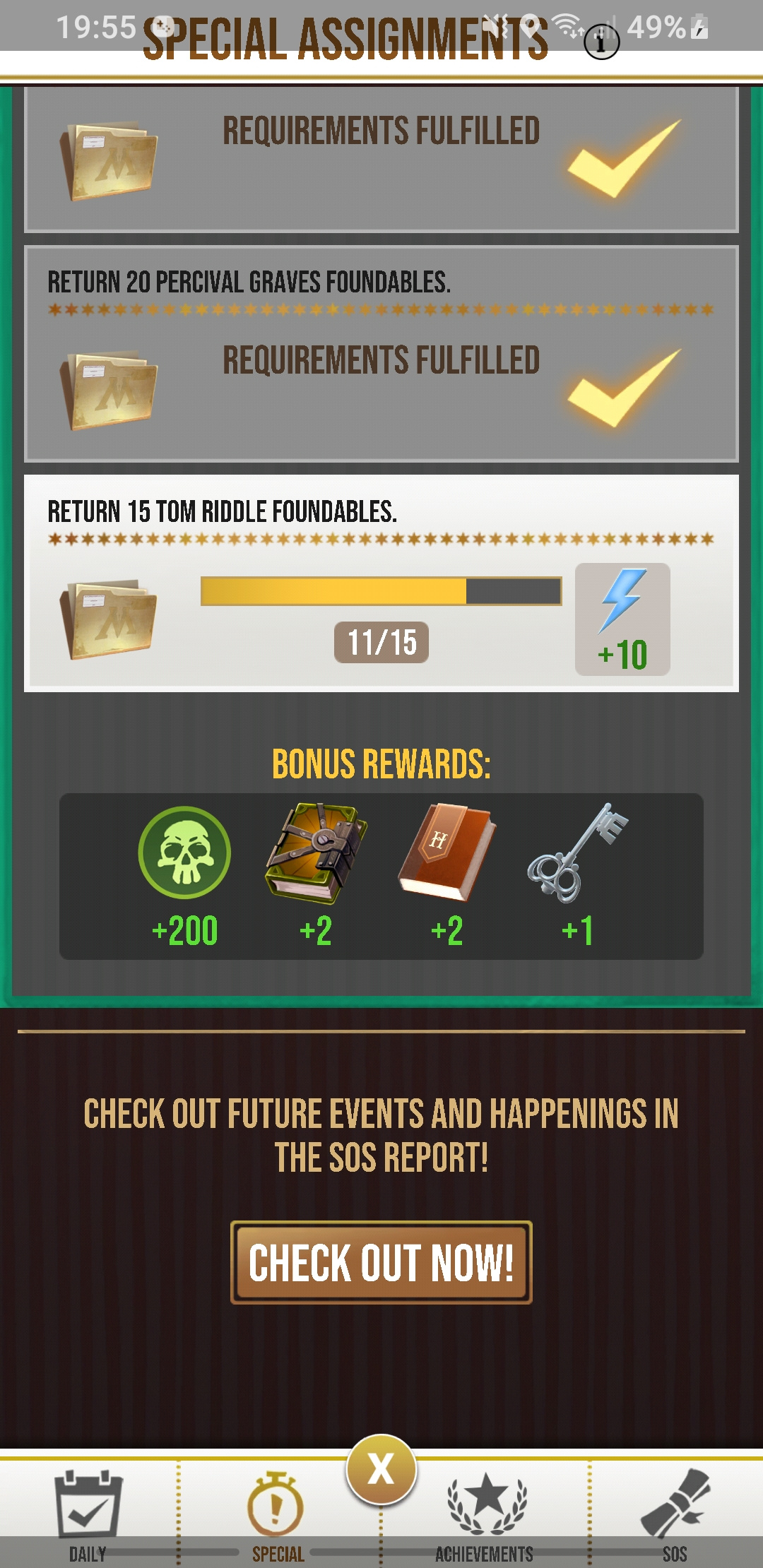 Foundable are completely disproportionate to the tasks needed to complete. I'm still needing 5 Tom Riddles and after 4 tonics I haven't a single one! I'm not sure of the algorithm changed but please change it back. I've been playing since the beginning and this is the first event I didnt finish because the foundables are just not there. This game is no longer fun, just stressful!