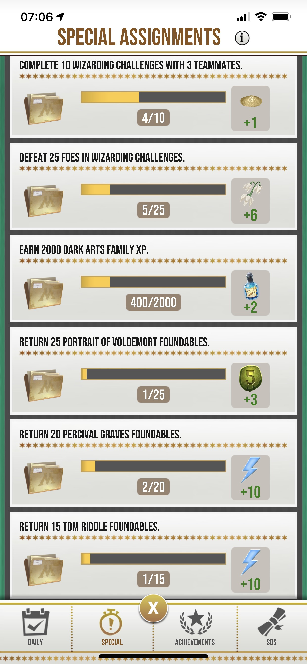 Hi, first to all, thanks for a magical weekend, but I do not understand why wizard hub say you would continue the game as home edition and the experience playing home is terrible. The game need to be more balance is not enough difficult ingredient on the Ground a mean difficult ingriendt or key ingredients dragón horn, winter flowers, the foundable are any family but never of the family is the game taks, or too few, is supost the difficult foundable show more often never show aleast you used trace potion, and of you use is was totally unbalance, I need to used 8 trace detection potion and still have 24/25 Voldemort I refuse tonuse one more trace detection for 1 Voldemort trace. Please Fix this kind of thing, please thing some of us really need to play from home without go outside for the pademic situation. And the other hand the rewards are so ridiculous please really really sit down and thing in how to improve the rewards, I play forncomplete the mission for the foundable and the XP but the rewards is just a joke, no pointless, disapoint, bad, I do not know how to explain how bad are the rewards I waste a lot of potion (resource) and time for nothing, literally nothing, the rewards are so so so bad. The only thing I win is XP and enjoy the game.