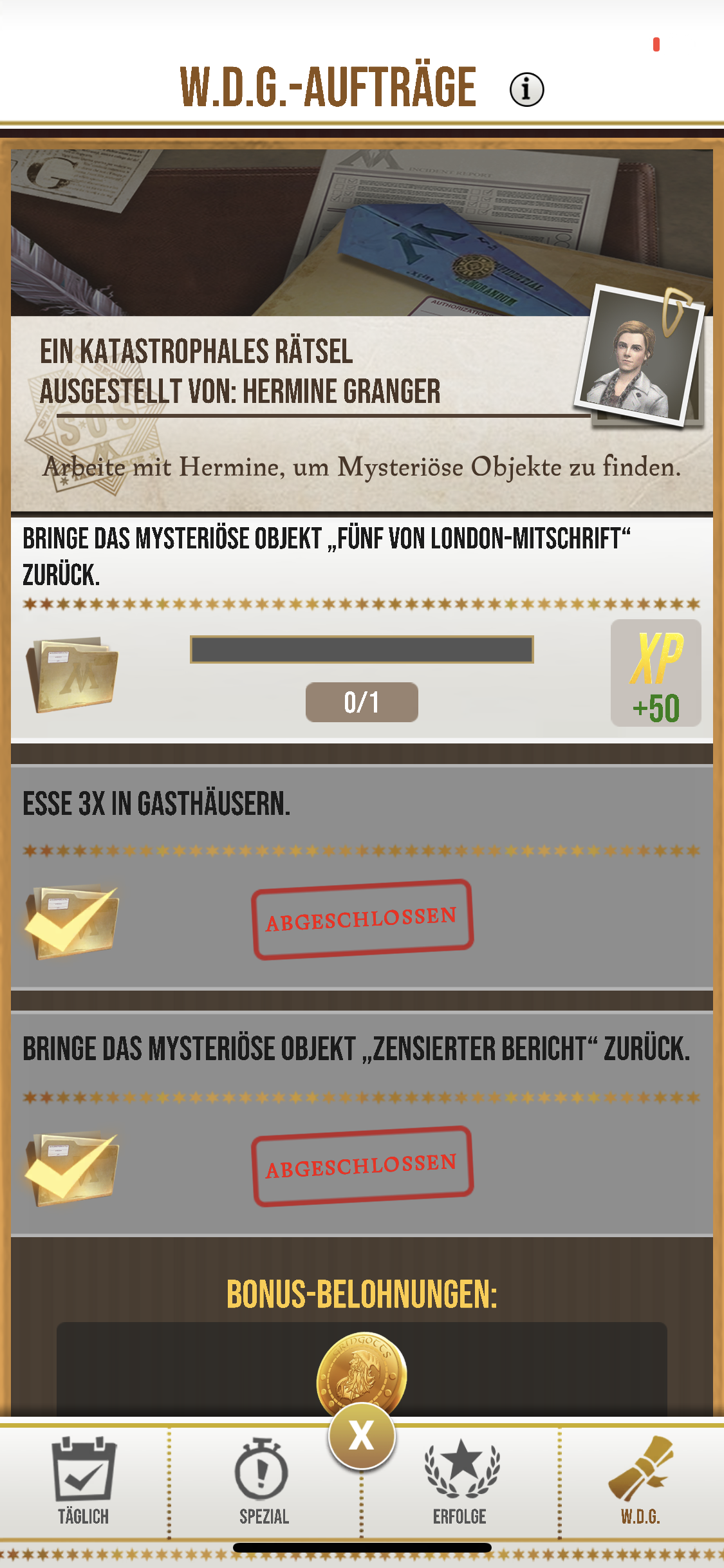 I've been playing the game 2.5 months and I have only found ONE mystery item (daily prophet). I am now Level 36. I contacted in-game support and they said it is fixed but it is NOT.