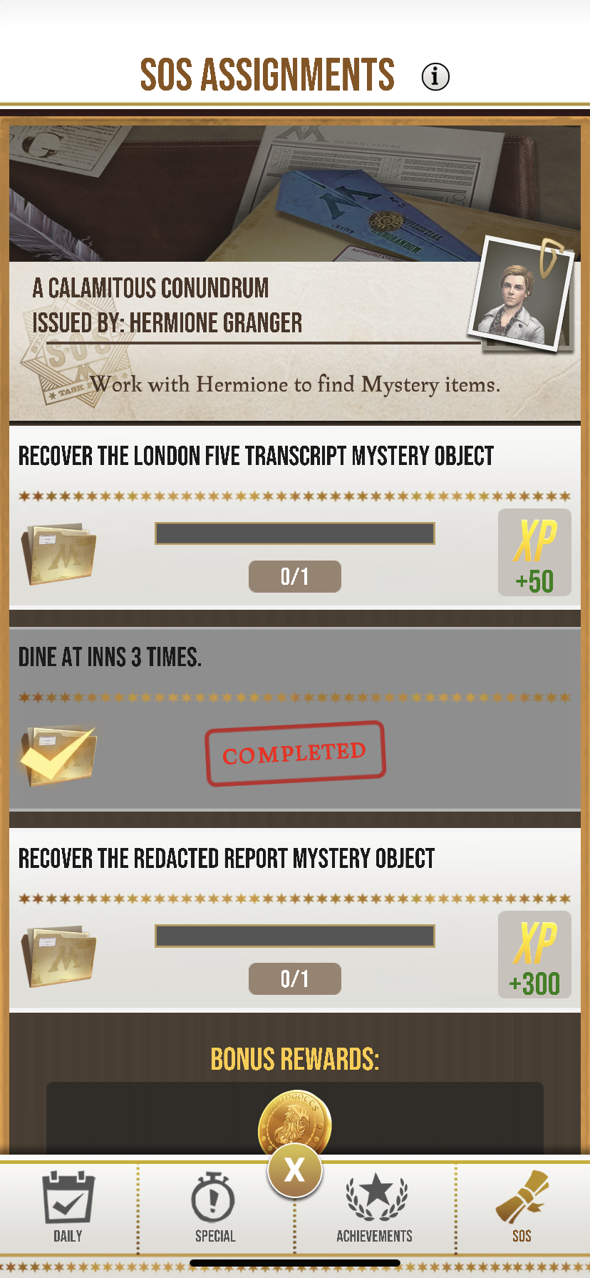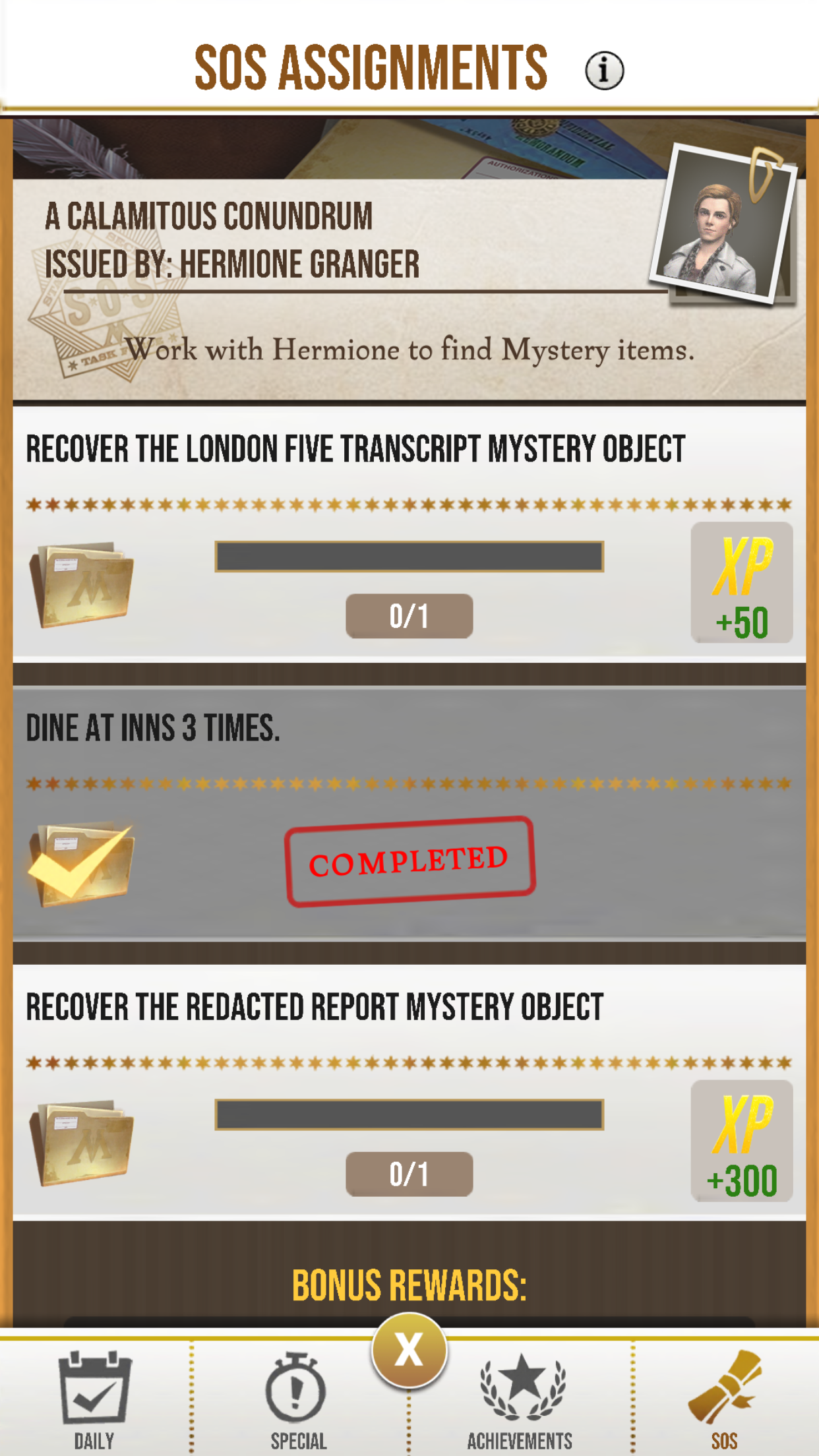 I’ve been playing for about six months, up to level 38, and haven’t been able to find the London five transcript or the redacted report mystery objects under the SOS assignments