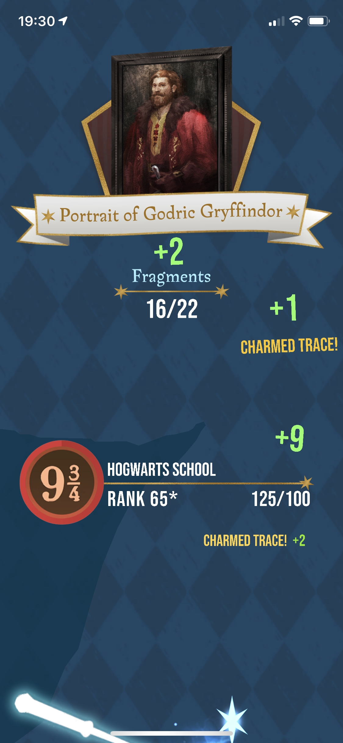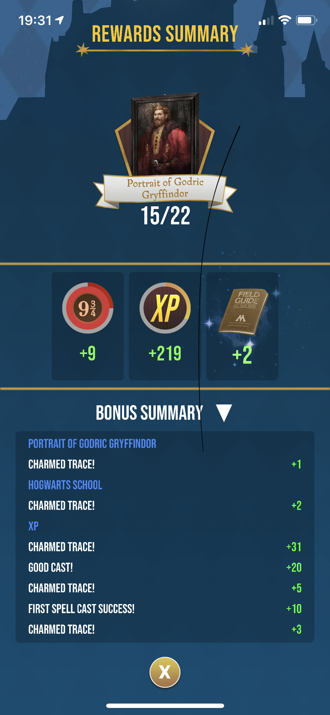 After casting the trace charm and returning a charmed Foundable, the rewards screen first shows that I obtained 2 fragments. Then the final rewards summary screen shows only one, and only one is counted in the registry. Occurred with all foundables that appeared after the charm was cast - 2 Bogrods and 2 Hufflepuff students.