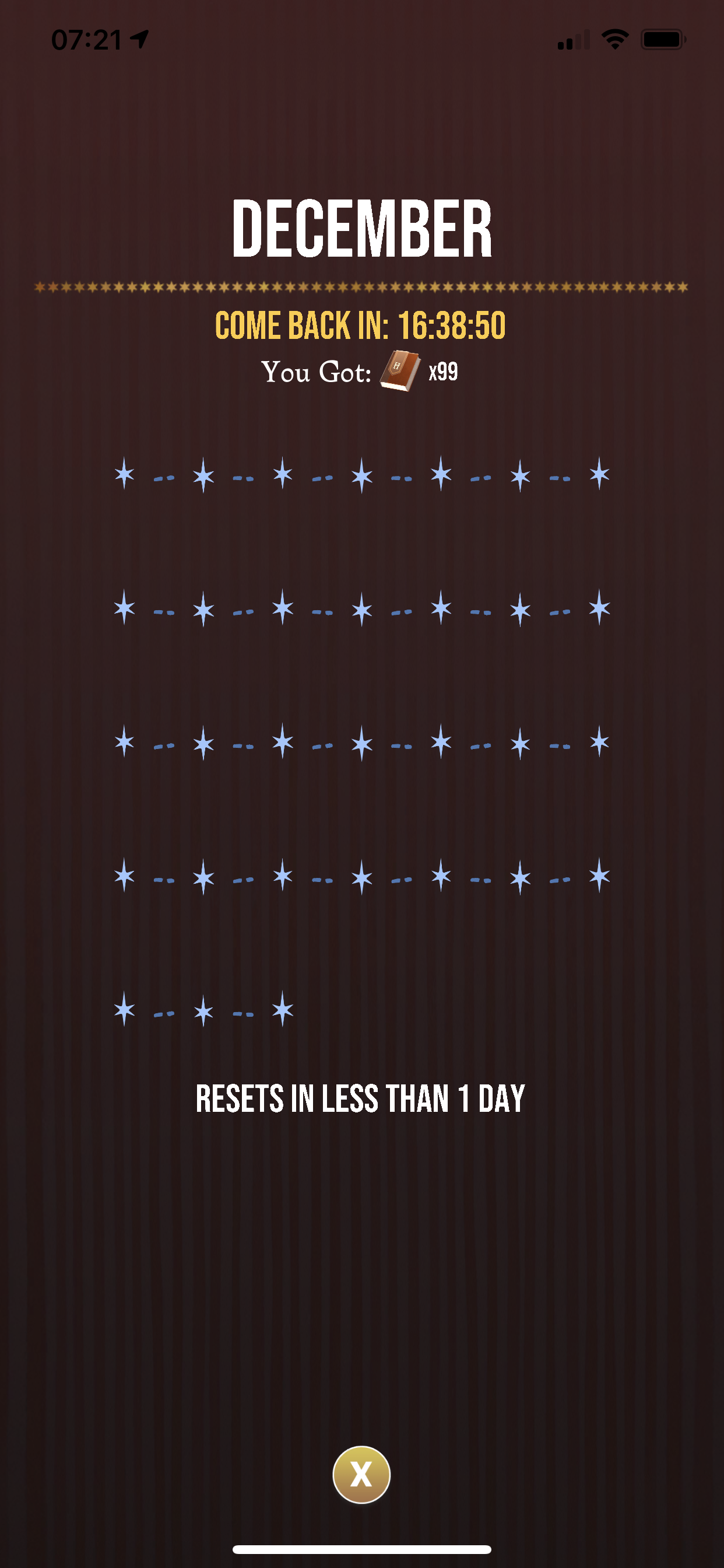 Hi! I was granted 99 spell books for today’s date 12/31/2020 from Daily Treasure, but they have not been credited to my account. My total is unchanged. Is this a bug or some other issue?