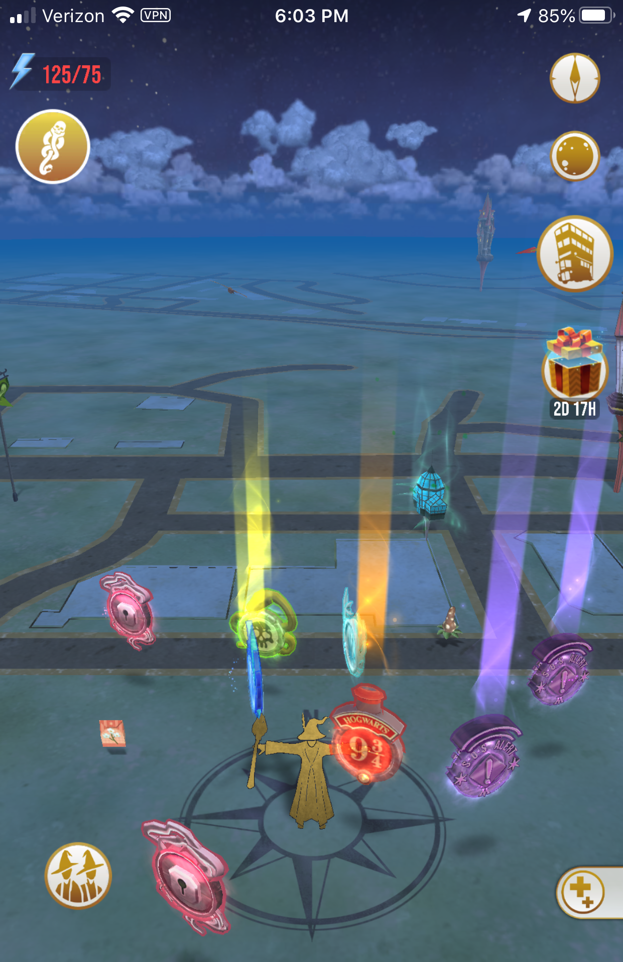 Since that happened my Avatar appears frozen with his arms outstretched as if it's still loading. I cannot interact with any map items (Ingredients or Foundables). I can access the Gifts menu, the Suitcase, Achievements and EDM menus with no problems. If I enter the Wizarding Bus then I cannot interact with anything.