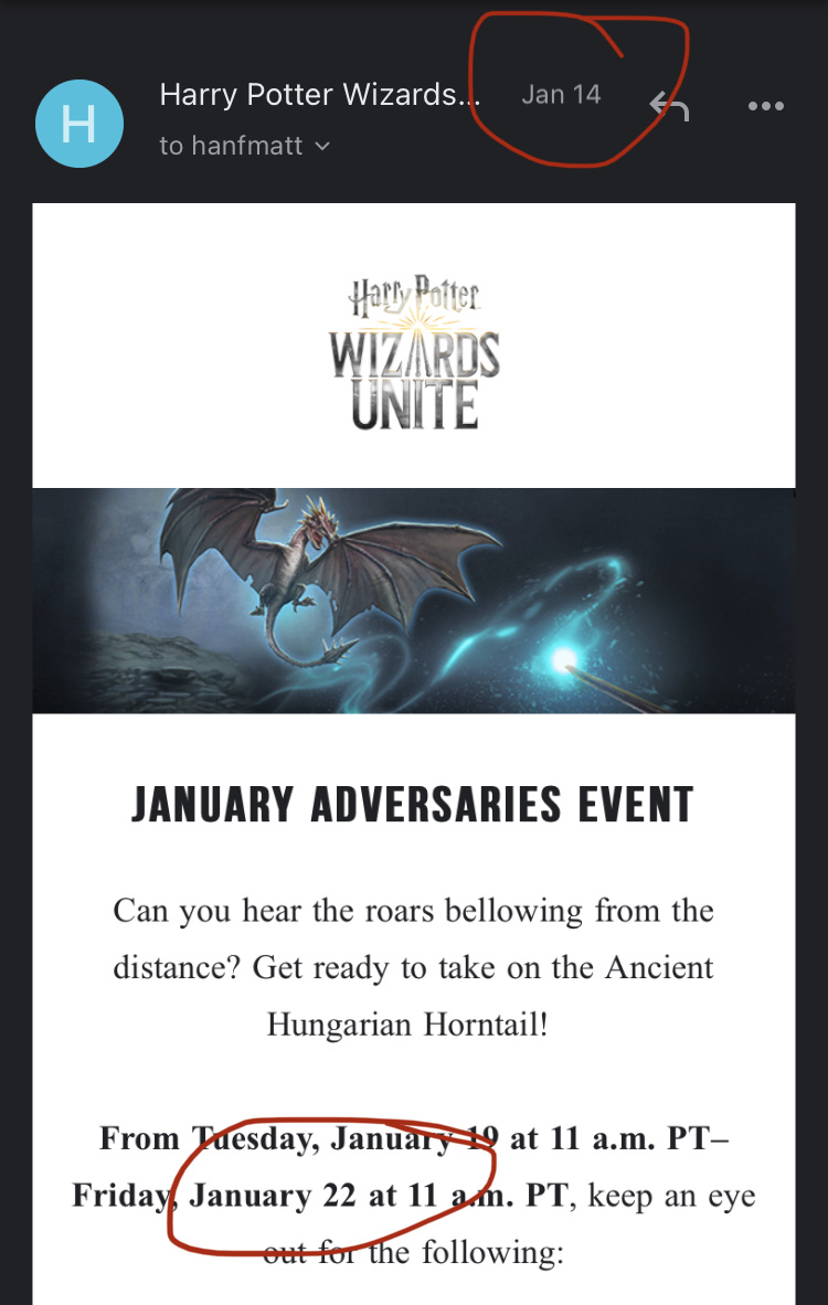 When did the event change from ending the 22nd to the 21st? (The email on 1/14 stated different from here)