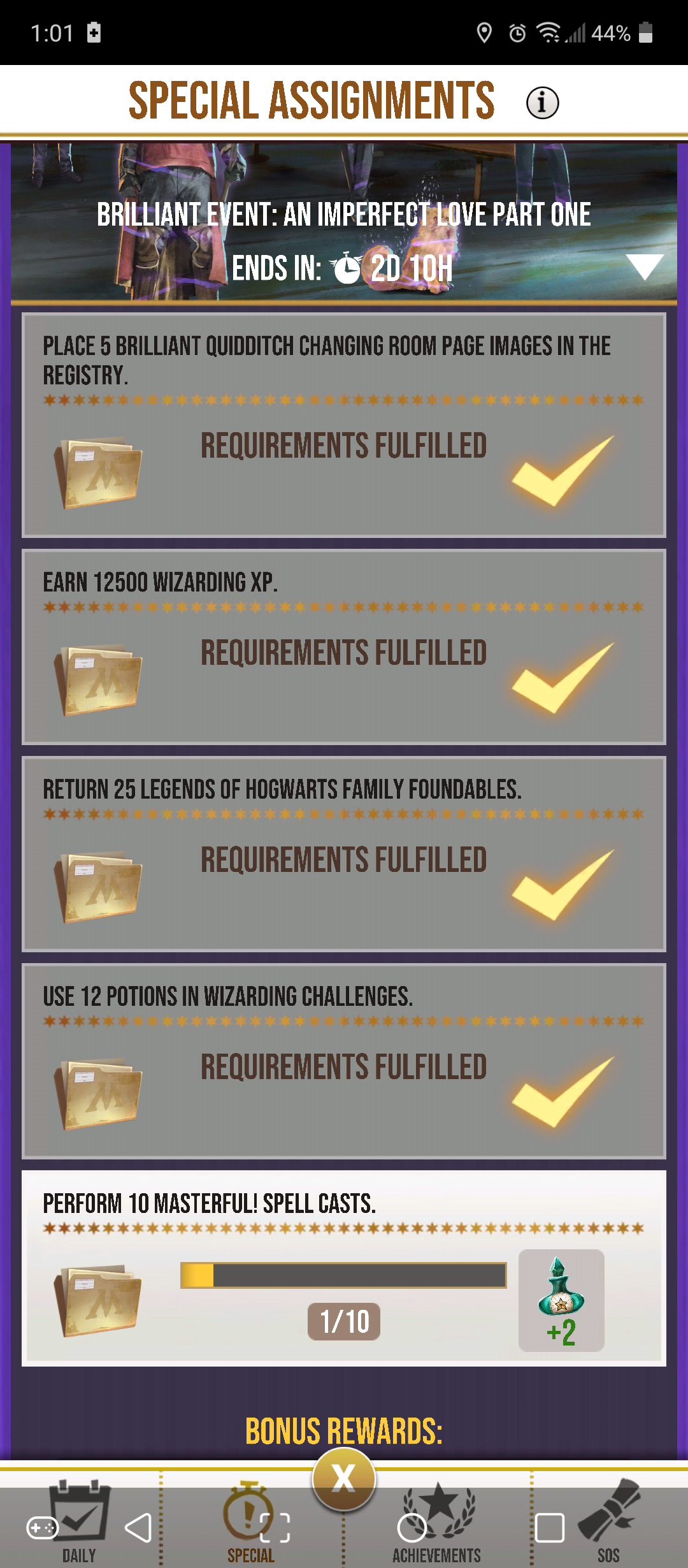 @hpwulola The 12 masterful spell task needs to go! I’m very good at spell casts and so far into bonus round, only task left is this one.