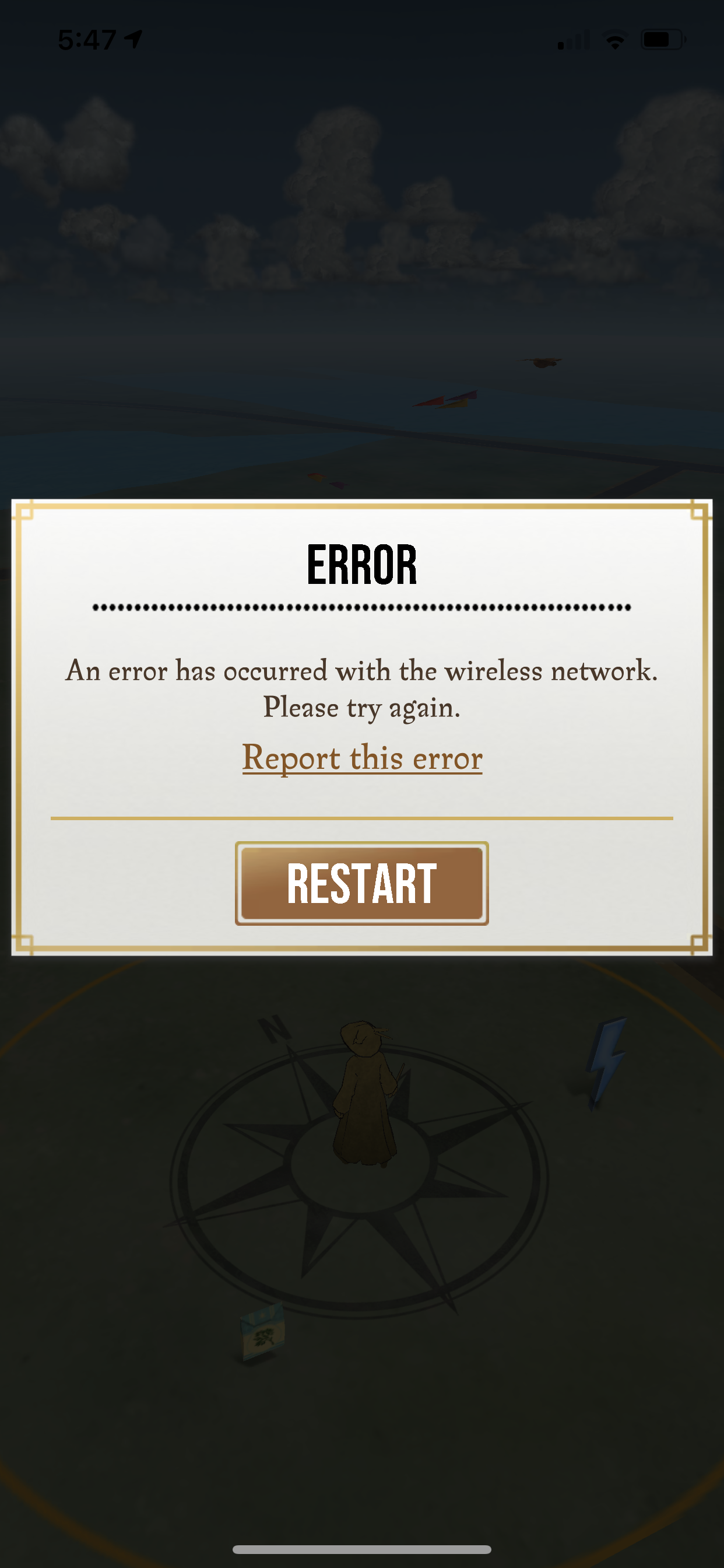 Every time I enter the light bus, there are two dialogue boxes from Harry, then I try to enter a chamber, and get an error message stating I need to restart the app. I haves tried restarting and reinstalling the app, but it hasn’t worked. This also happens when I enter a Wizard Challenge Chambers not just with the Knight Bus.