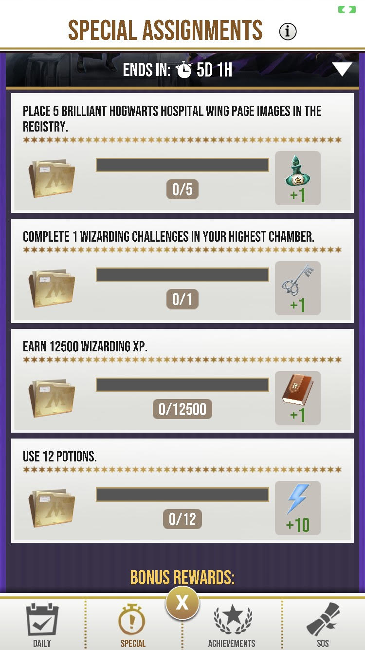 Just got to the bonus task, and whereas all task info that I can see shows the Bonus tasks having one where one needs to ‘Cast 20 Great Bombarda spells’, with a Potent Exstimulo as a reward, I can’t see the same. Is this related to the 2.18 update or something else?