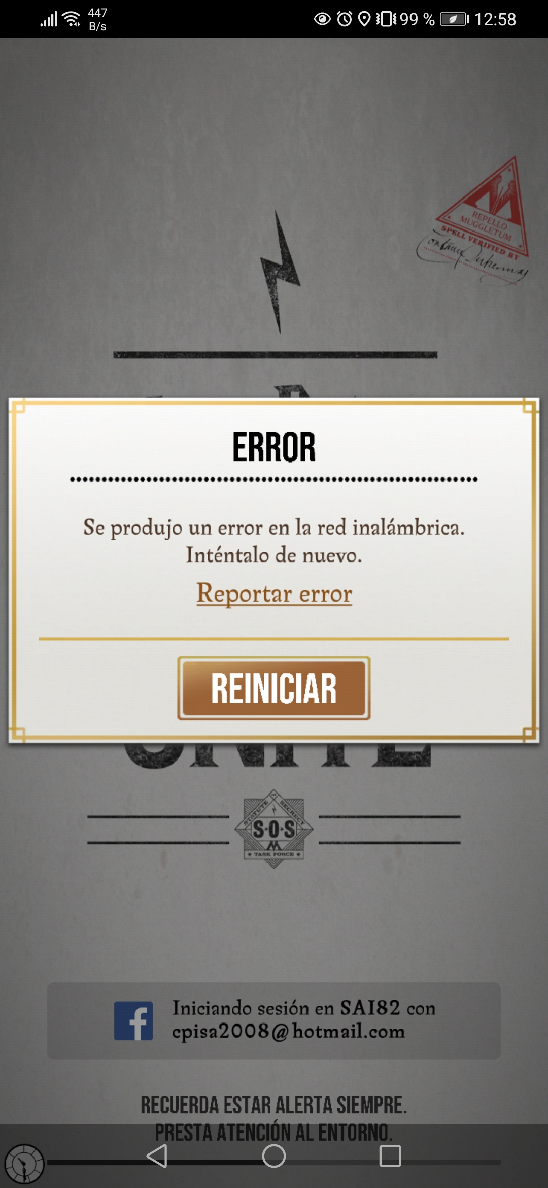 I’ve been kicked out of my highest room wizarding challenge four times today. Each time I get a pop up which says network error, restart game. There is no other option, you have to restart. When you do, every potion is lost and the rune you used is gone as wel. This is ridiculous, how can you ever complete the brilliant event like this.
